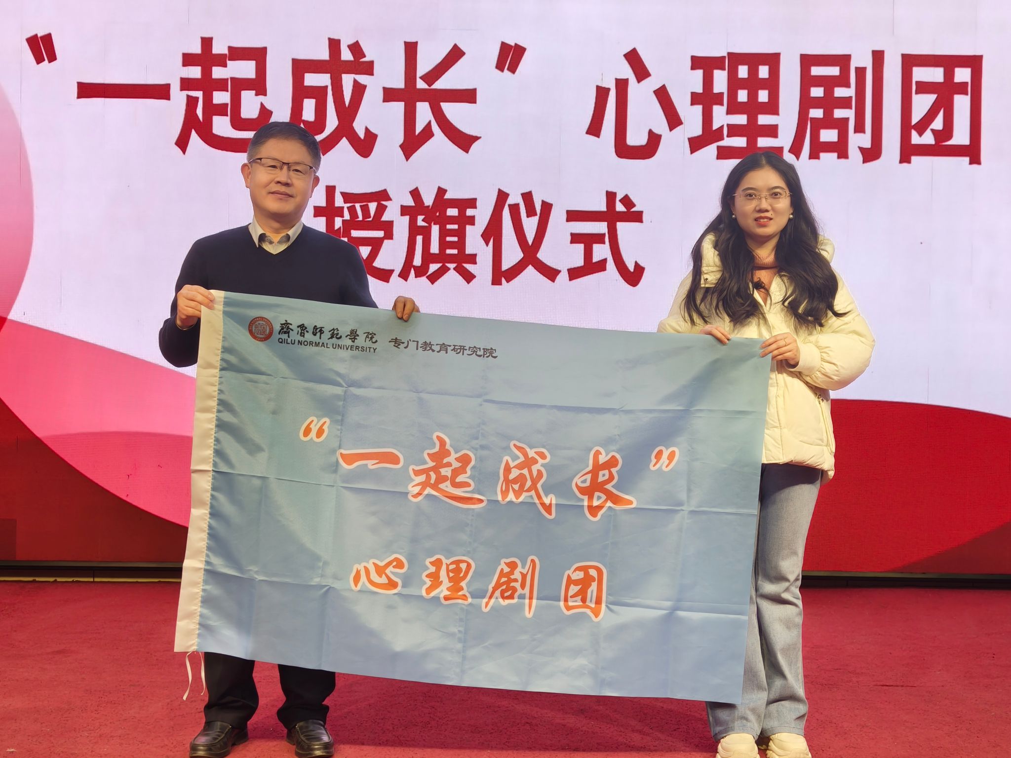 活动中,刘增军副院长为研究院“一起成长”心理剧团授旗,标志着该剧团正式启动运行。“一起成长”心理剧团将依托研究院专业资源,以“以剧为镜、观心知行”为理念,通过心理情景剧创作与演绎,为专门教育实践搭建多元化平台。
